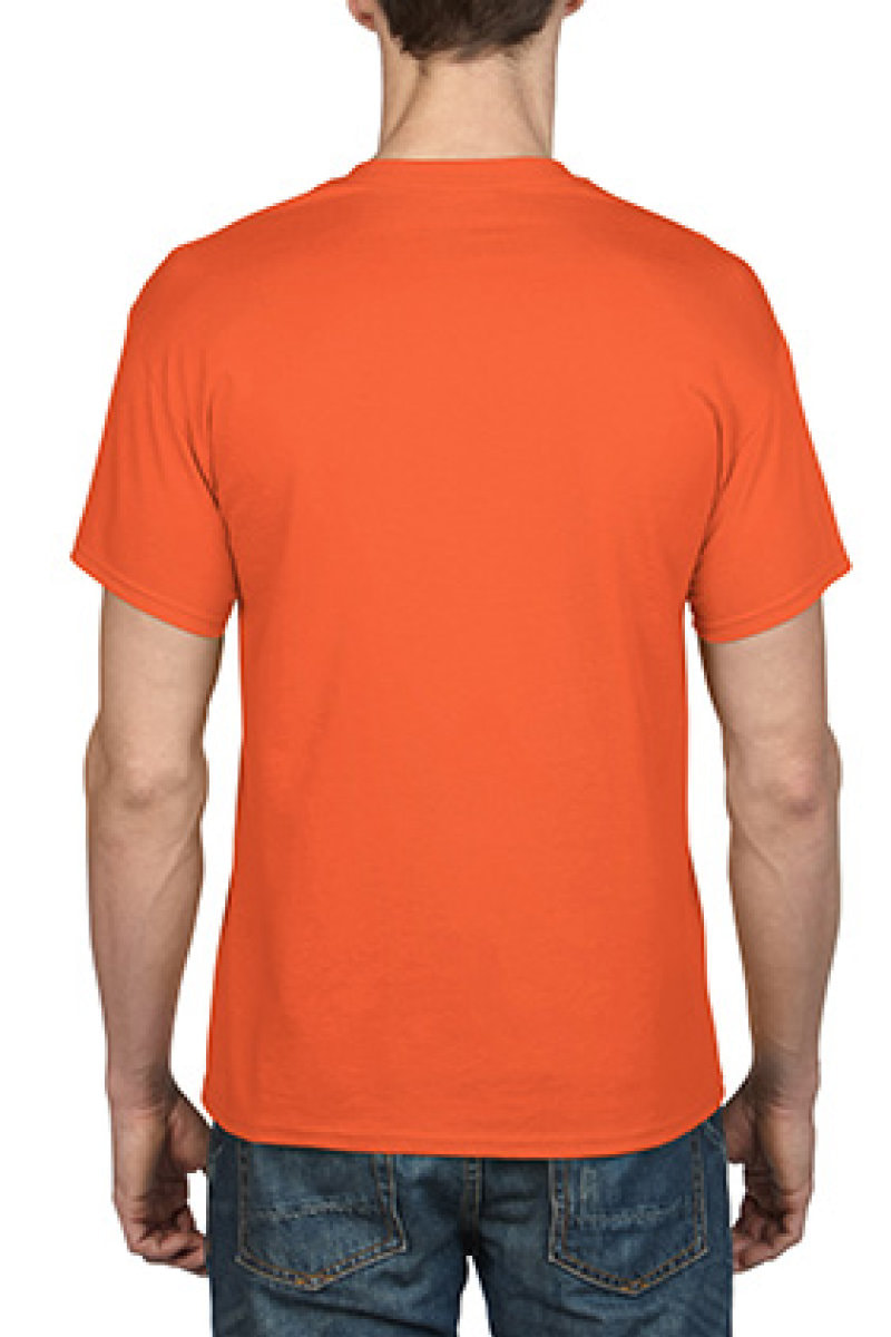 50% cotton/50% polyester pre-shrunk jersey knit 5.6 ounce t-shirt. Seamless double-needle collar. Taped neck and shoulders. Heat transfer label. Quarter-turned body to eliminate center crease. Double-needle stitched sleeve and bottom hems. Moisture wicking properties. Sizes: S, M, L, XL, XXL, 3XL, 4XL, 5XL